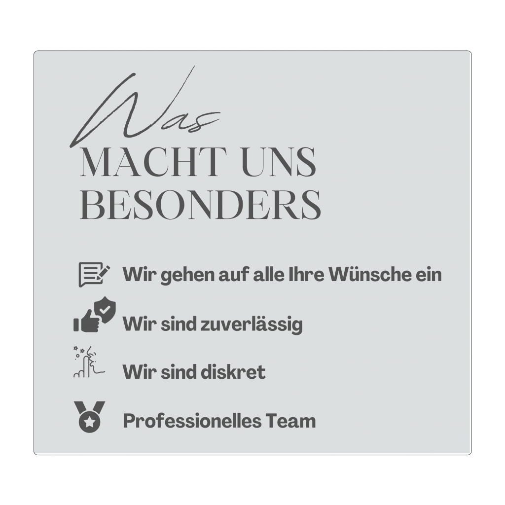 Wir bieten Ihnen im Voraus klare, faire und transparente Festpreise für unsere Dienstleistungen. Fragen Sie einfach an.